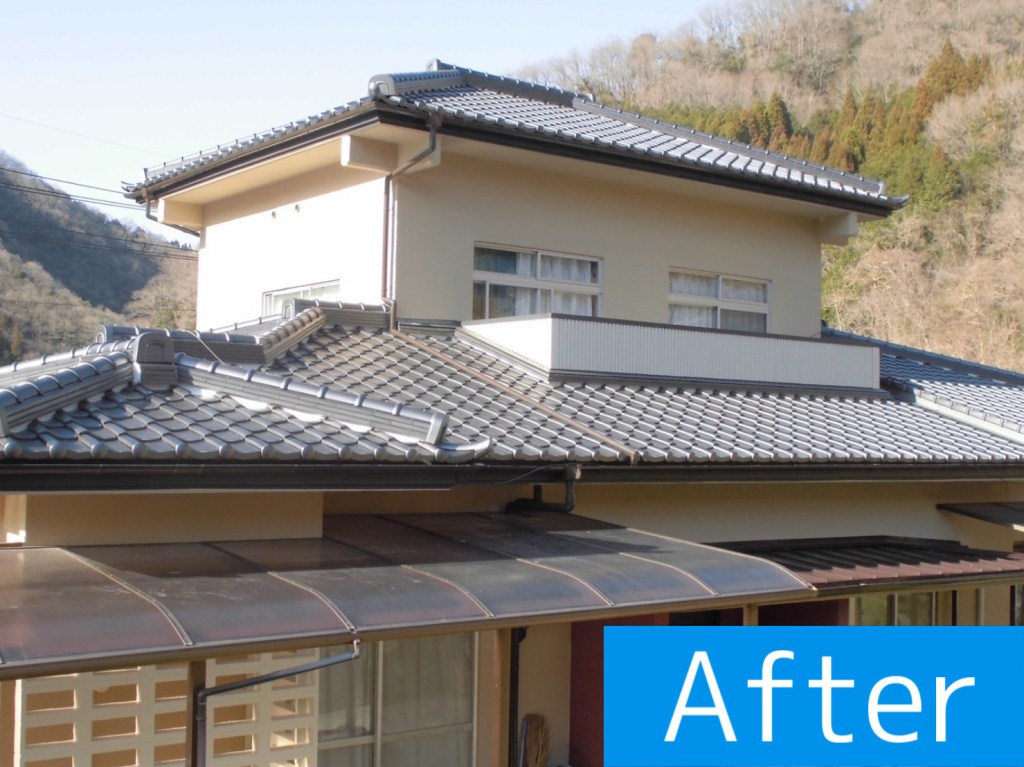 お客様の希望 構造的な雨漏りを改善屋根の形状を変えて瓦葺き。